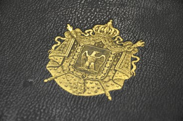Hormis les étiquettes typographiques, les ex-libris peuvent prendre la forme d’estampilles ou de cachets (parfois en pochoirs), de sceaux en cire ou encore d’estampilles poinçonnées. Les ex-libris des bibliothèques, qui constituent un autre lieu de passage des livres, en sont les meilleurs exemples. L’Institut canadien de Montréal (1844-1880) possède l’une des marques de provenance les plus singulières : une languette de carton imbriquée dans deux fentes pratiquées sur la page de garde. On peut retrouver sur la reliure une autre forme d’ex-libris, les monogrammes, qui consistent en un caractère alliant les principales lettres d’un nom. Nous avons également pu voir un exemple de super libris, une marque d’appartenance qui se trouve sur l’extérieur du livre. Sur la couverture et le dos d’un immense ouvrage donné par Napoléon III lors de sa visite au Québec, plusieurs « N » ainsi qu’un écusson sont gravés en or.