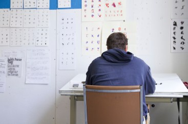 Parallèlement aux explorations en cours sur les mécaniques de lecture, nous avons amorcé un second projet à la jonction des thèmes de la lisibilité et de l’abstraction. Il s’agit de variations formelles sur la structure des signes que Guillaume Lépine, étudiant en design à l’UQAM, a entamées il y a quelques années dans un cours de typographie donné par Judith Poirier. Dans ce projet expérimental, qu’il a continué avec La chose imprimée, Guillaume génère des ensembles de signes abstraits inspirés par différents alphabets. Exécutant une nouvelle forme à partir des précédentes, il produit des pages couvertes de signes qui semblent liés les uns aux autres par un même « vocabulaire » visuel (c’est-à-dire des mêmes matériaux, formes et couleurs). Ces ensembles ressemblent parfois à s’y méprendre à des systèmes de notations, des logos ou des alphabets étrangers. Ces expérimentations formelles posent des questions intéressantes sur nos capacités d’interprétation et de lecture des signes.