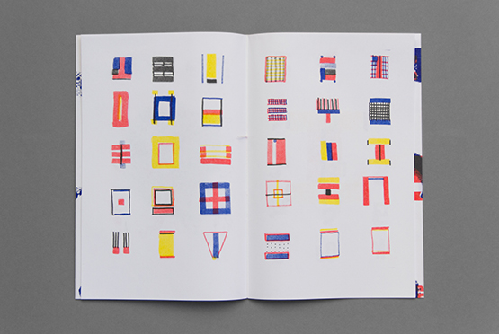 Ce projet à la jonction du design, des arts visuels et de la sémiologie expose un travail formel sur les frontières et les glissements entre les signes typographiques, iconiques et les formes abstraites. Les ensembles de signes, conçus de manière intuitive par Guillaume Lépine, explorent l’idée de variation et de cohérence à l’intérieur d’un système visuel déterminé par différents outils, matériaux et couleurs. L’observation de ces figures, présentées sous forme de planches, pose la question de la lisibilité et du décodage, car elles rappellent des alphabets ou des icones existants sans en être véritablement. Un texte d’introduction à la lecture des signes, écrit par Joséane Beaulieu-April, suggère que bien que les formes et les couleurs guident la réception, leur sens ne se fixe pas. L’interprétation reste ouverte et varie en fonction des habitudes et de l’expérience de chaque individu.